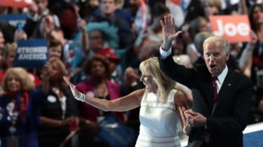 Image copyrightREUTERSImage captionMr Biden and his wife, Jill, receive a rapturous applause